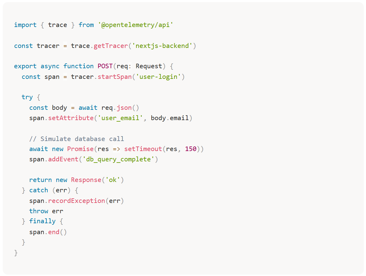 Let’s walk through the basics of getting OpenTelemetry working in a Next.js backend.
